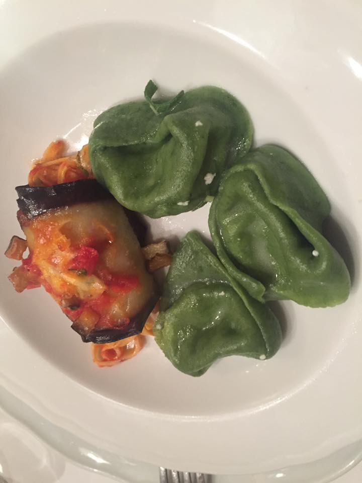 Involtino di Melanzana grigliata con tagliatelle e tortelloni verdi con patate