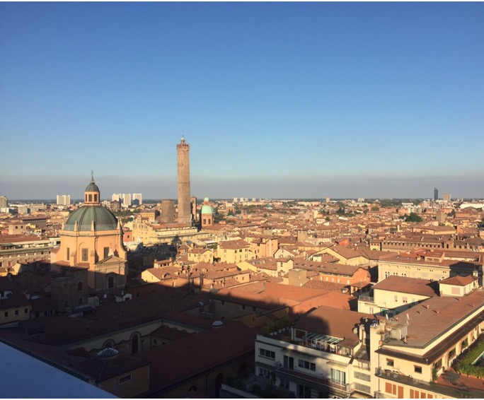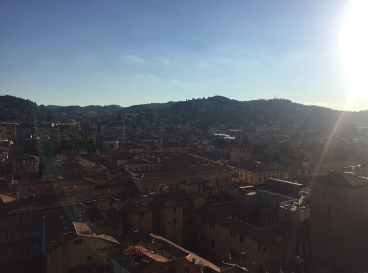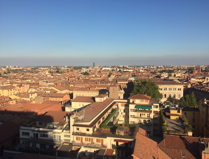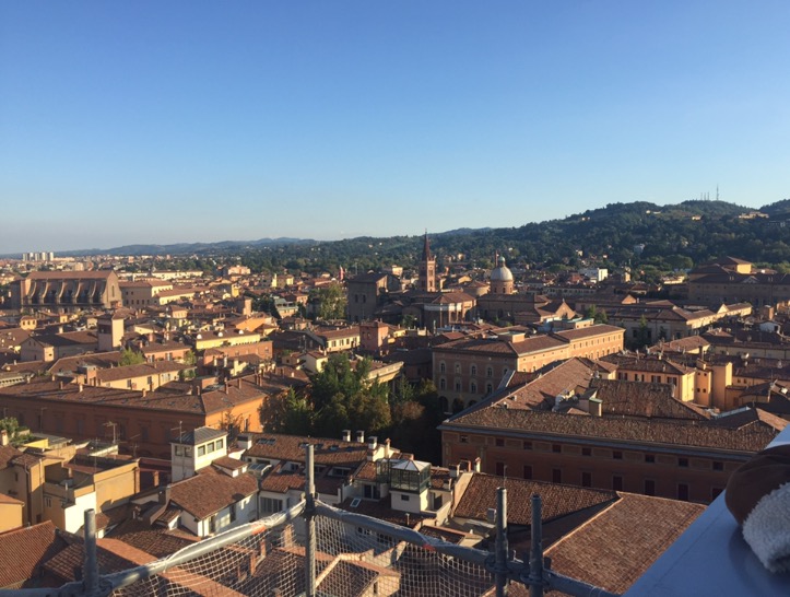 Qui una terrazza mostra per 270 gradi un punto di vista unico e privilegiato. Molto facile e meno faticoso sicuramente da raggiungere dei 498 gradini da farsi per arrivare sulla Torre degli Asinelli.