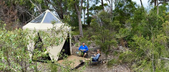 Trascorri giorni alla scoperta di paesaggi spettacolari e una ricca fauna selvatica sull’isola della corona di passeggiate in Tasmania e notti sdraiati in tende eco-comfort semi-permanenti in stile safari.
