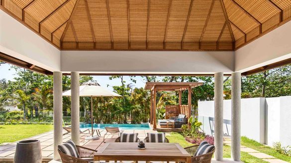 Prenota il tuo soggiorno in villa a partire da USD 960 a notte con pernottamento e prima colazione e sperimenta il lusso sofisticato sulla sontuosa distesa di sabbia bianca e setosa della spiaggia di Le Chaland, a 10 minuti di auto dall’aeroporto internazionale Sir Seewoosagur Ramgoolam.