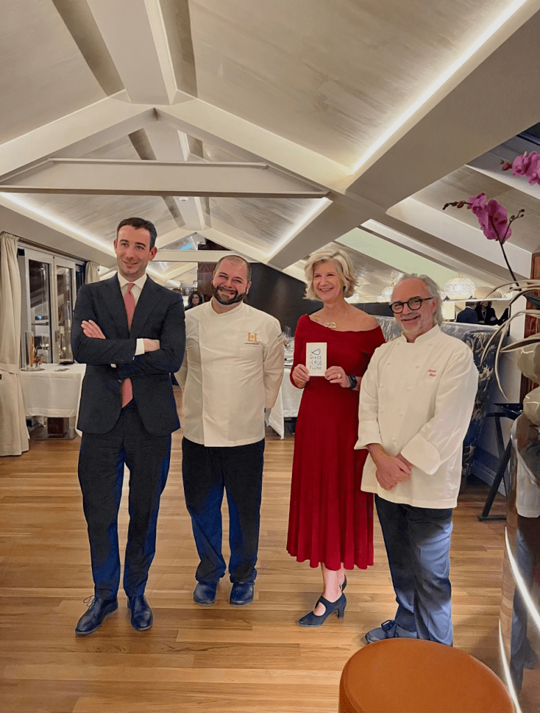 Dalla Trota marmorata affumicata al faggio,polvere di pane all’aceto balsamico, gel di aceto di lamponi,al Risotto e gamberi di fiume, pistilli di zafferano, rosmarino fino all’anguilla dal fuoco al roner, patata alla polvere di peperone, succo di vitello agli agrumi, zeste candite, effervescenza di lime, il menù è stato costruito con il massimo rispetto e valorizzazione dei prodotti locali, eccellenze ancora nascoste che meritano di trovare voce nei menù dell’alta ristorazione.In una location che è un piccolo gioiello di cucina locale, rivisitata da tocchi di creatività e angoli segreti del territorio ancora tuttida scoprire, gli ospiti hanno condiviso l’amore per il territorio el’impegno nei confronti del sociale.